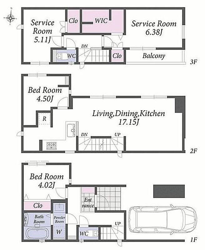 | 間取り | 2LDK+2S | 建物構造 | 木造、地上3階建て |