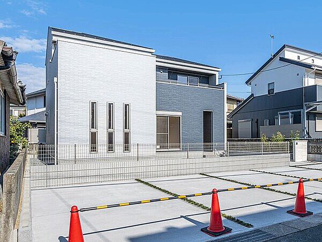カースペース並列4台駐車可能。LDK21畳の南道路に面した新築戸建てです。