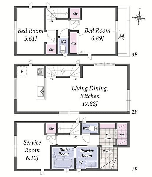 間取り 2LDK+S 建物構造 木造、地上3階建て