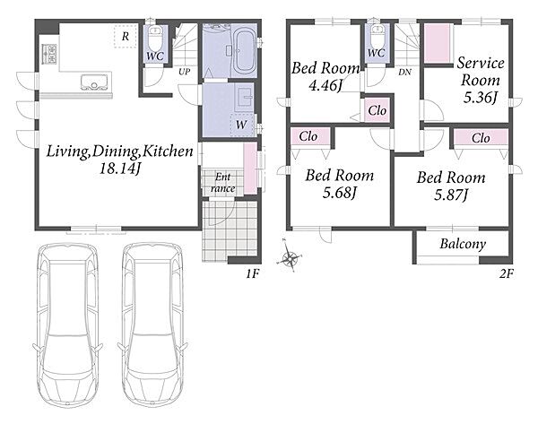 LDKは広々18畳。並列駐車2台可能な新築戸建てのご紹介です。