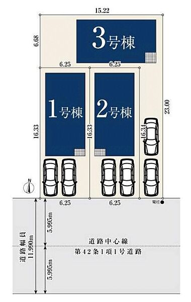 | 駐車場 | 2台(有/2台(1~3号棟)) | 道路の幅員 | 11.9m |