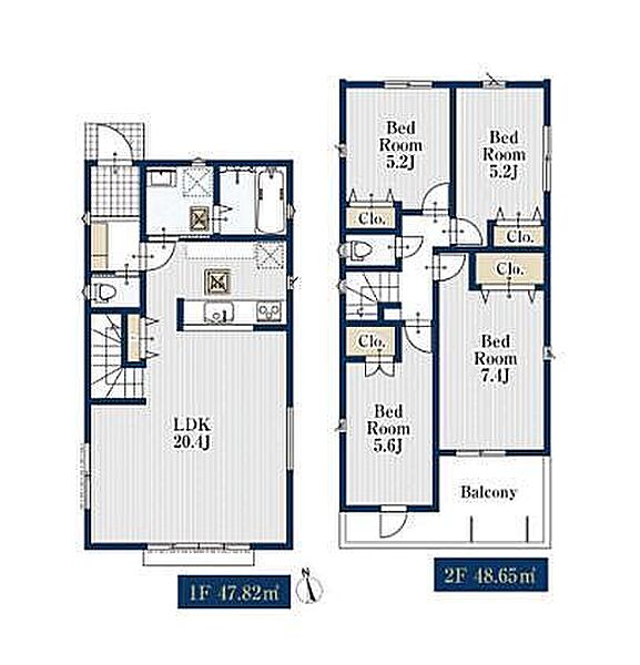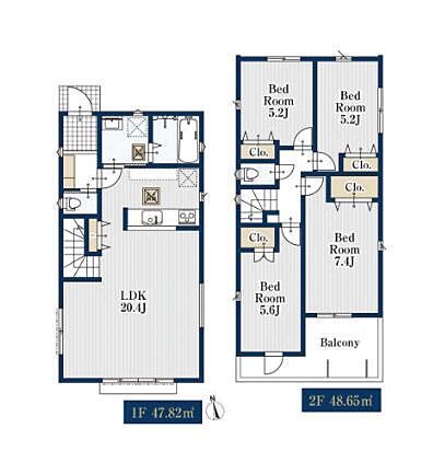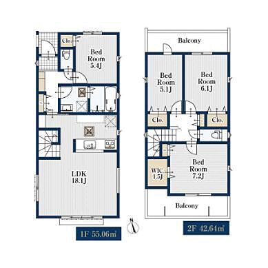 | 建物面積 | 96.47m2~97.70m2 | 土地面積 | 155.27m2~155.73m2 |