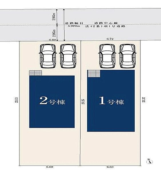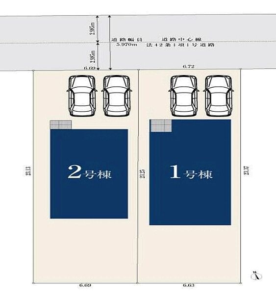 | 駐車場 | 2台(有/2台(1・2号棟)) | 道路の幅員 | 5.9m |