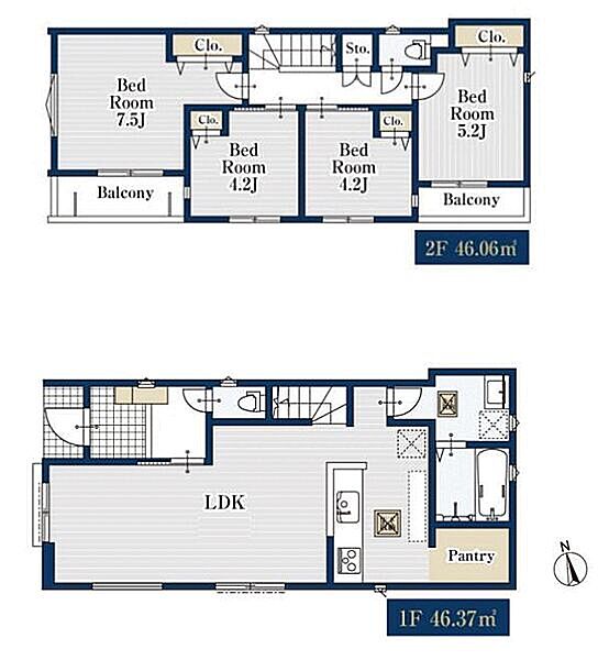 | 建物面積 | 92.43m2~92.94m2 | 土地面積 | 95.09m2~114.44m2 |