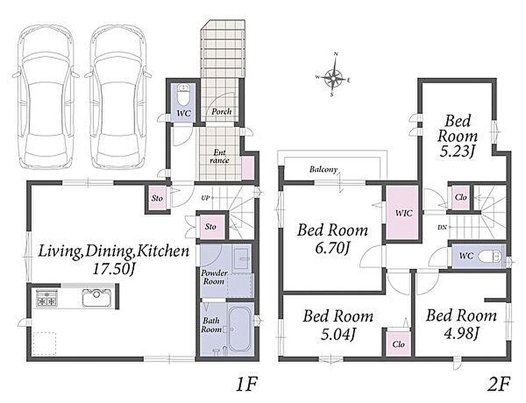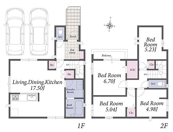 並列駐車2台可能。LDKには床暖房を採用した新築戸建てのご紹介です。