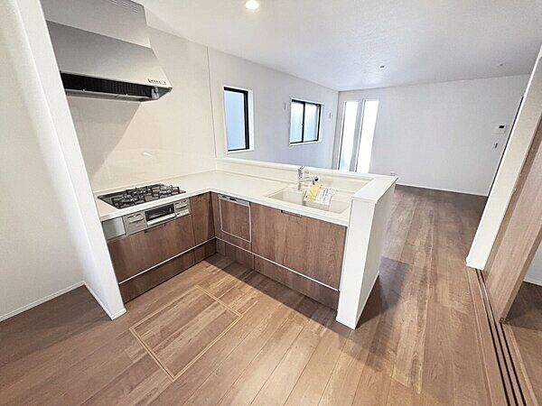 ご家族の顔が見渡せる対面式キッチン採用。カースペース付き新築分譲住宅です。