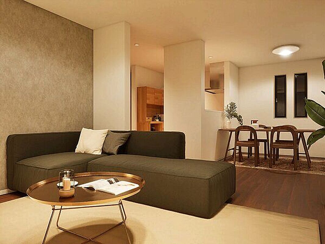家族団欒のLDKは広々19畳。会話も弾む対面式キッチン採用の新築戸建です。