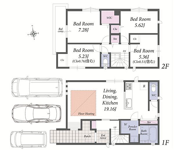 | 駐車場 | 2台 ~ 3台(有/2台(1号棟)、有/3台(2・3号棟)) | 道路の幅員 | 5.9m |