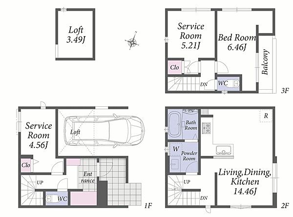 | 間取り | 1LDK+2S | 建物構造 | 木造、地上3階建て |