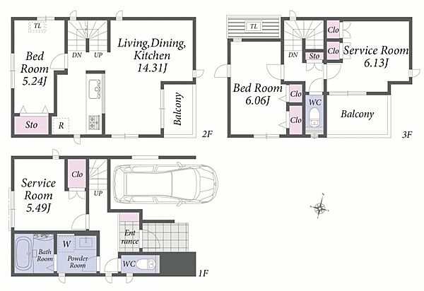 | 間取り | 2LDK+2S | 建物構造 | 木造、地上3階建て |