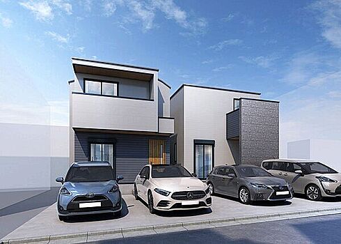並列2台駐車可能なカースペース有。穏やかな低層エリアに誕生の新築分譲住宅。