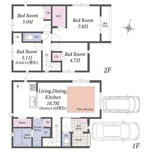 並列駐車2台可能。LDKは足元から暖かな床暖房付きの新築分譲住宅です。
