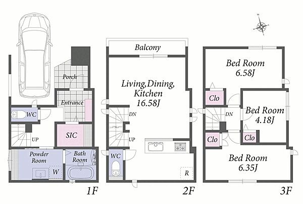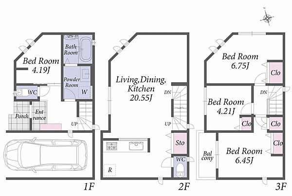 | 間取り | 3LDK~4LDK | 建物構造 | 木造、地上3階建て |