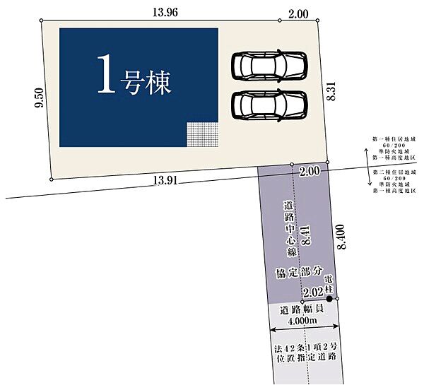 | 駐車場 | 2台(有/2台(1号棟)) | 道路の幅員 | 4m |