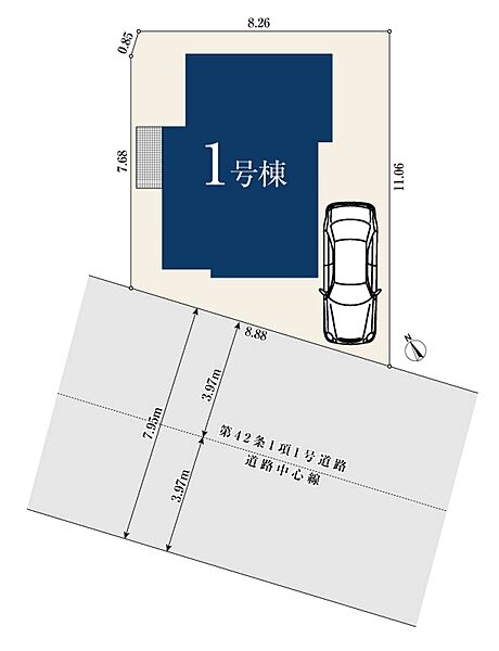 | 駐車場 | 1台(有/1台(1号棟)) | 道路の幅員 | 7.9m |
