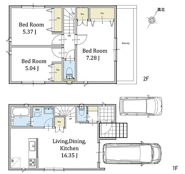低層エリアにつき穏やかな住環境。カースペース付の2階建て新築分譲住宅です。
