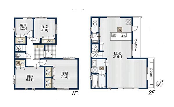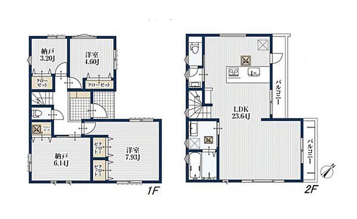 バルコニー2ヶ所有。広々23畳のLDK対面式キッチン採用の新築戸建です。