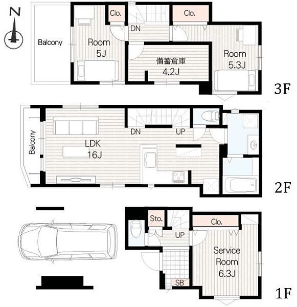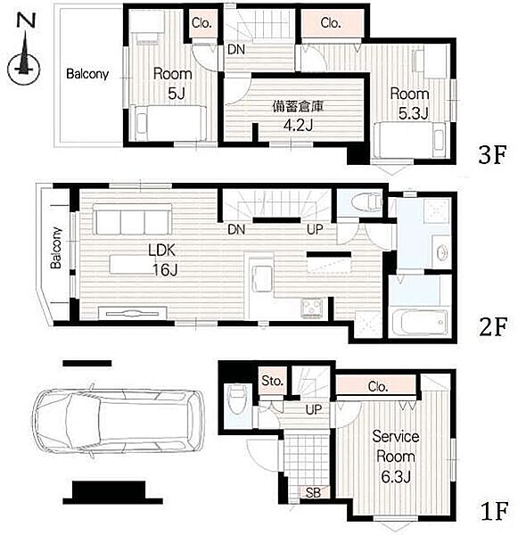 | 間取り | 2LDK+S | 建物構造 | 木造、地上3階建て |