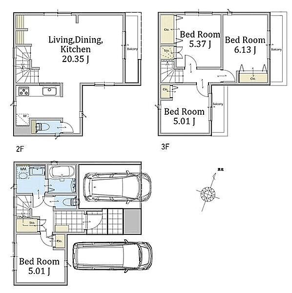 3面採光のLDKは広々20畳。お車2台駐車可能な4LDKの新邸です。