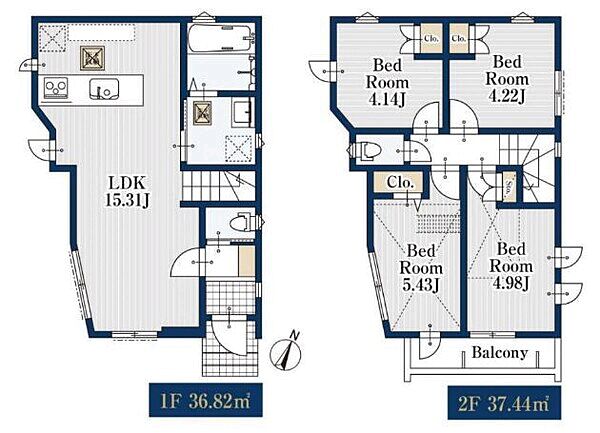 全居室収納+ロフト付で収納豊富。対面式キッチン採用の2階建て新築戸建です。