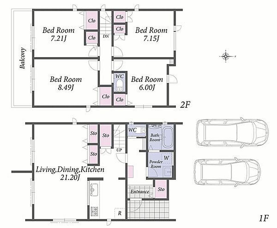 LDKは広々とした21畳。並列駐車可能なカースペース付きの新築戸建です。