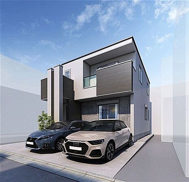 カースペース並列2台駐車可能。ZEH水準仕様の2階建て新築住宅です。