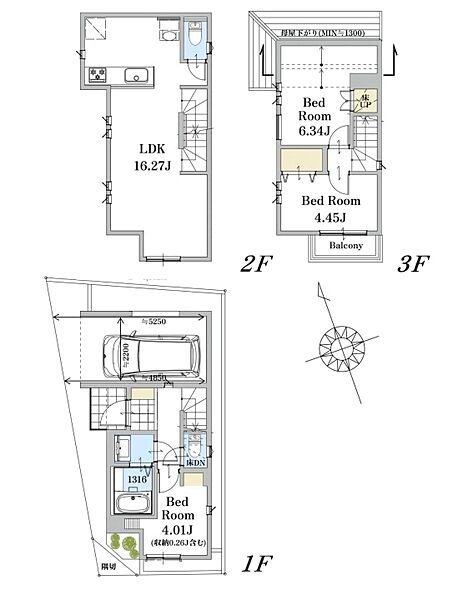 | 駐車場 | 1台(有/1台(1・2号棟)) | 道路の幅員 | 3.9m~4m |