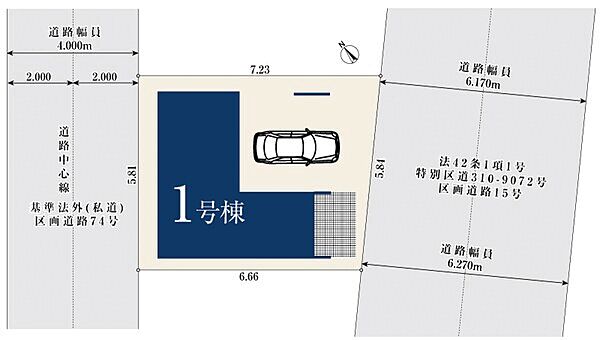 | 駐車場 | 1台(有/1台(1号棟)) | 道路の幅員 | 6.1m |