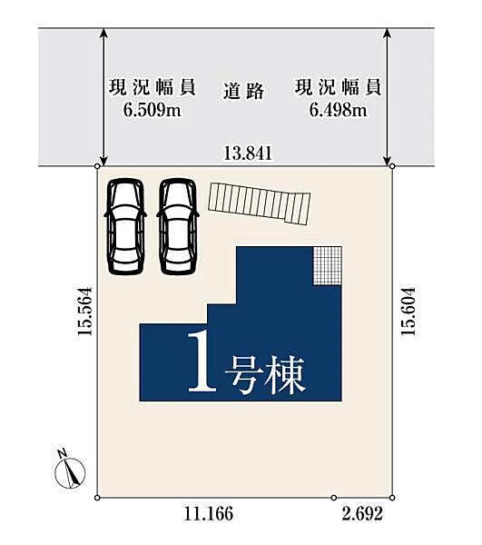 | 駐車場 | 2台(有/2台(1号棟)) | 道路の幅員 | 6.4m |