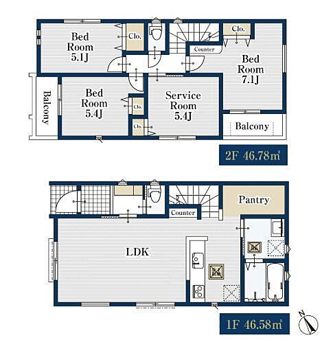 LDKには対面式キッチンを採用。全室収納付きの2階建て新築分譲住宅です。