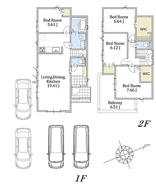 バスルームには浴室乾燥機採用。並列駐車可能なカースペース付き新築分譲住宅。