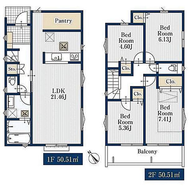 LDKには収納に便利なパントリー有。並列駐車2台可能な新築分譲住宅です。
