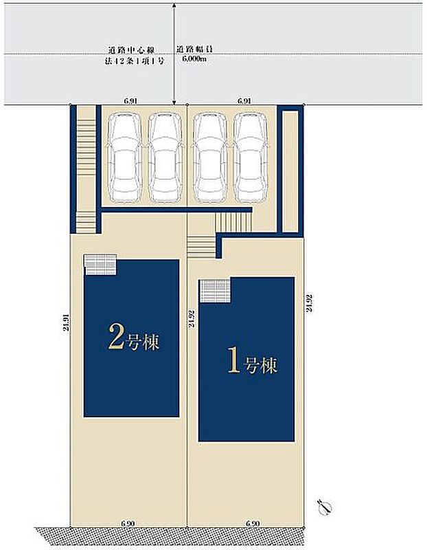 | 駐車場 | 2台(有/2台(1号棟)) | 道路の幅員 | 6m |