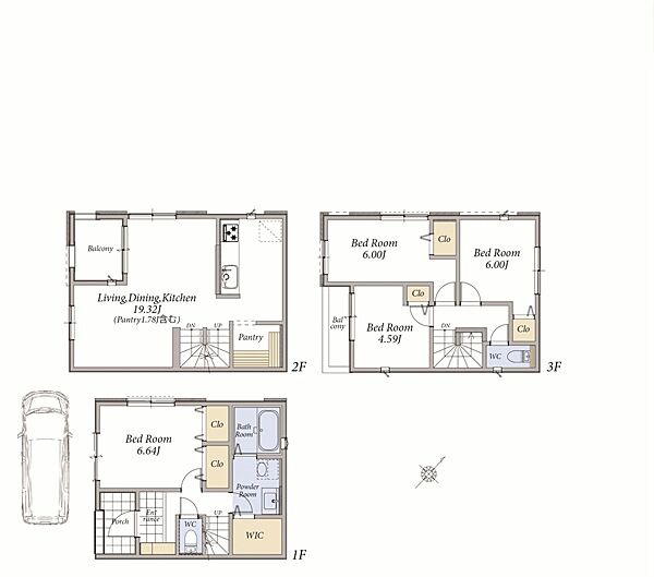 | 間取り | 4LDK | 建物構造 | 木造、地上3階建て |