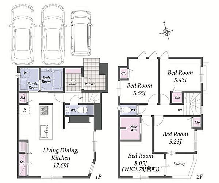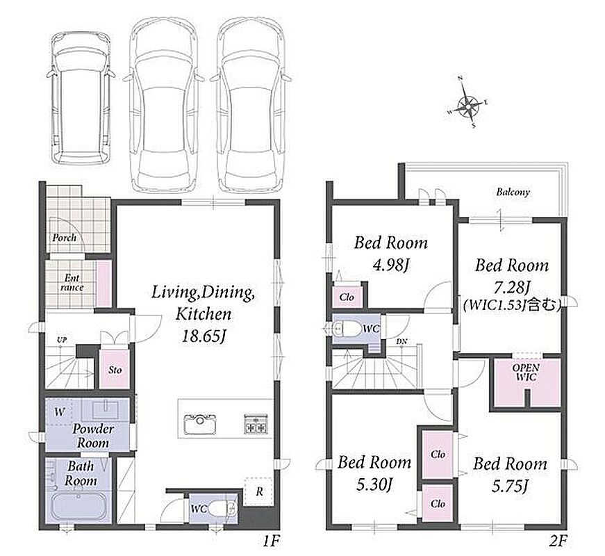 カースペース並列3台駐車可能。ZEH水準の2階建て新築分譲住宅です。