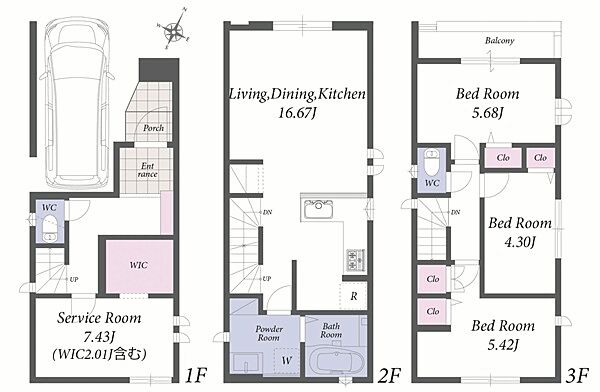| 間取り | 3LDK+S | 建物構造 | 木造、地上3階建て |