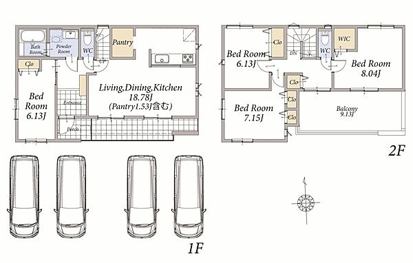 | 駐車場 | 4台(有/4台) | 道路の幅員 | 6.1m |