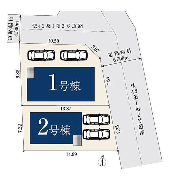 | 駐車場 | 2台(有/2台(1・2号棟)) | 道路の幅員 | 4.5m~6.5m |