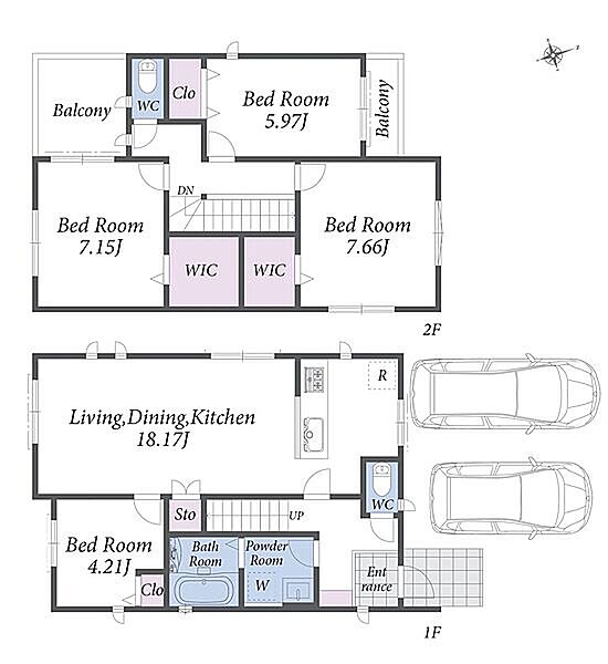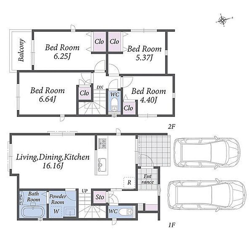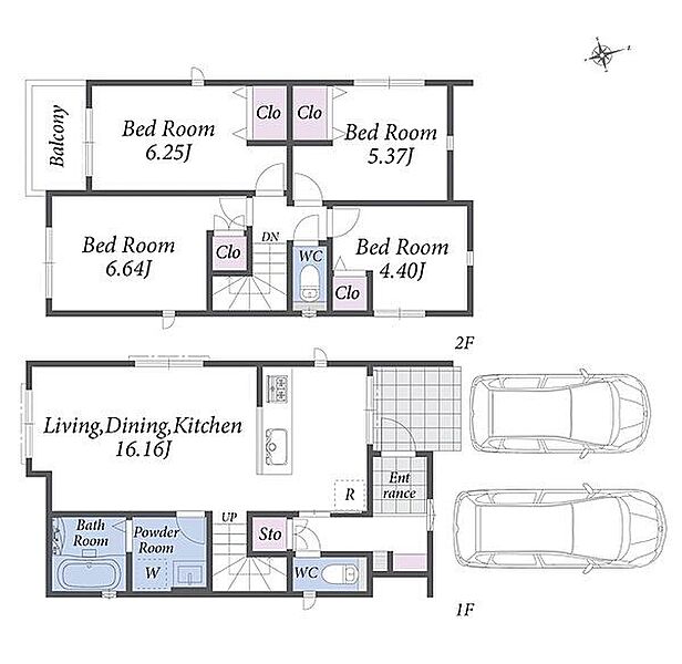 全居室収納付き。浴室は広々1坪タイプ。並列駐車2台可能な新築分譲住宅です。