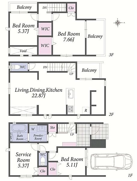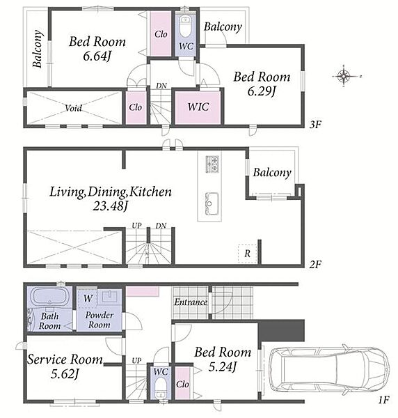 | 間取り | 3LDK+S | 建物構造 | 木造、地上3階建て |