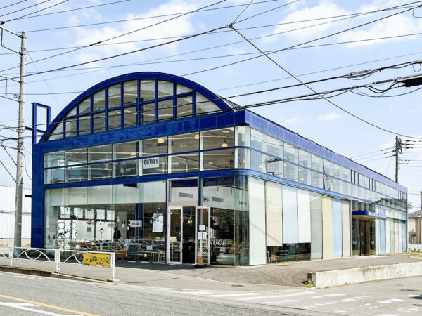 ガラス張りの明るい店内に、おしゃれなソファやテーブルなどの家具...