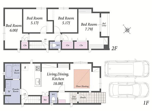 バスルームには浴室乾燥機採用。並列駐車可能なカースペース付き新築住宅です。
