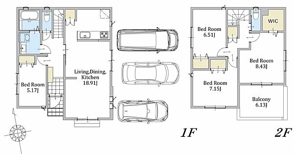 並列3台駐車可能なカースペース付き。ZEH水準仕様の省エネ住宅です。