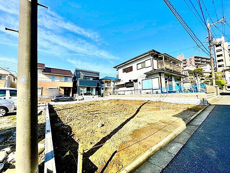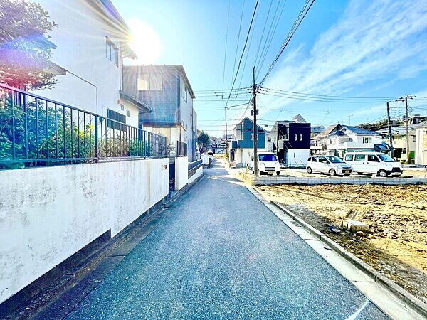 南北両面道路で開放感のある立地。1階にリビングを配置した新築分譲住宅です。