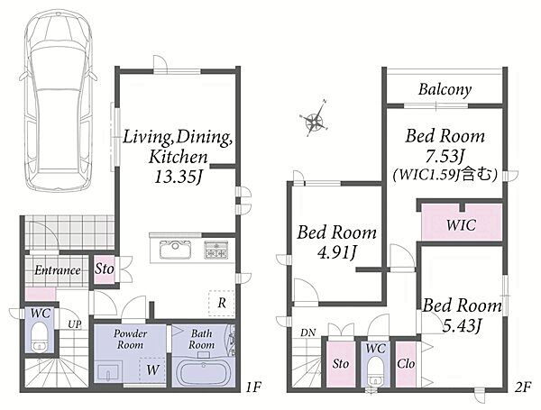 収納力のあるウォークインクローゼット採用。カースペース付きの新築戸建です。