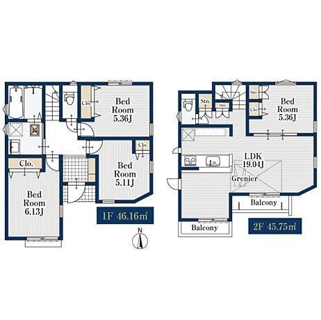 全居室収納に加えグルニエもあり収納豊富。カースペース付の新築戸建です。