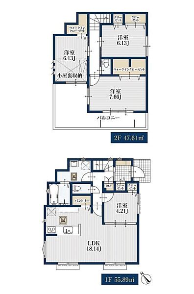 対面式キッチン採用のLDKは広々18畳。全居室収納付きの新築戸建です。