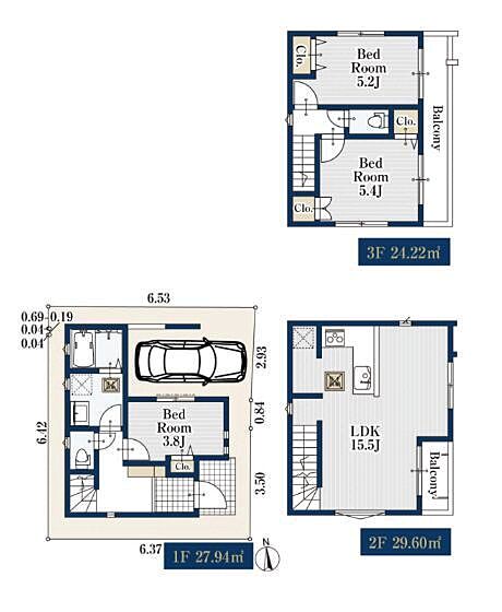 | 間取り | 3LDK | 建物構造 | 木造、地上3階建て |