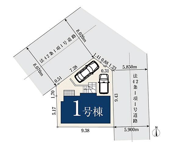 | 駐車場 | 2台(有/2台(1号棟)) | 道路の幅員 | 5.8m~8m |