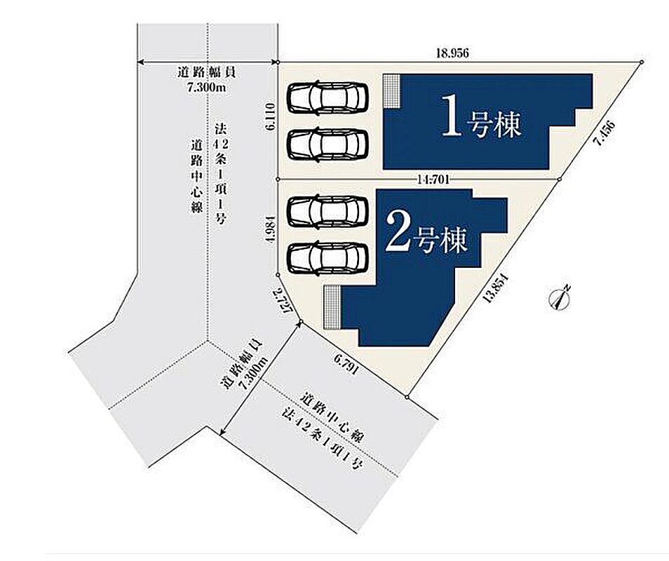 | 駐車場 | 2台(有/2台(1・2号棟)) | 道路の幅員 | 7.3m |